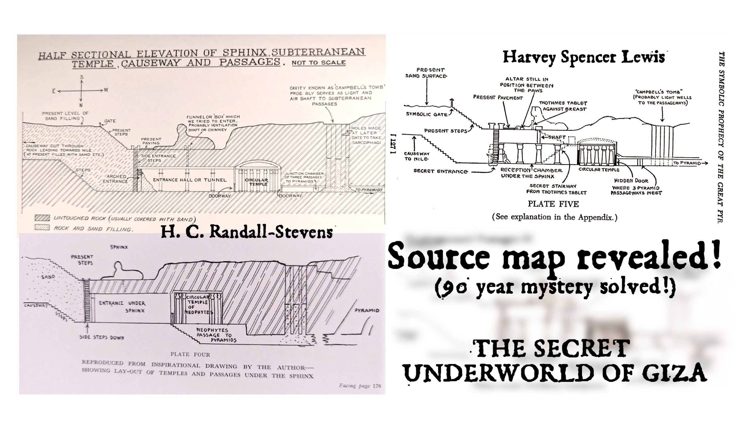 Revealing the lost source map from 1932, used by Harvey Spencer Lewis and H. C. Randall Stevens in their published works, I outline the evidence of a giant temple structure below the Great Sphinx, connected by tunnels to all three pyramids.