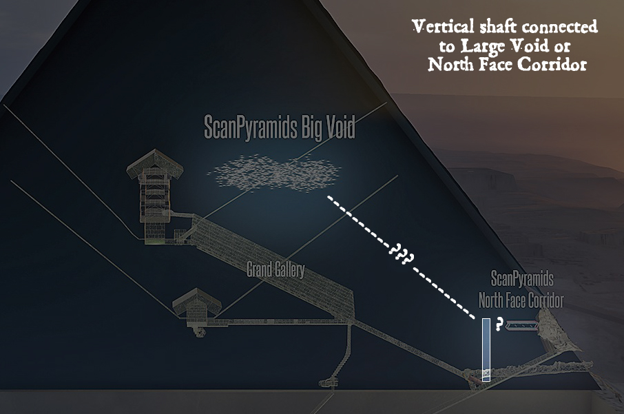 This is another extremely significant suggestion, as the ascending shaft may very likely connect into the North Face Corridor or the Large Void above the Grand Gallery; the two structures detected by the ScanPyramids team, as well as the Khafre Project, only in recent years.