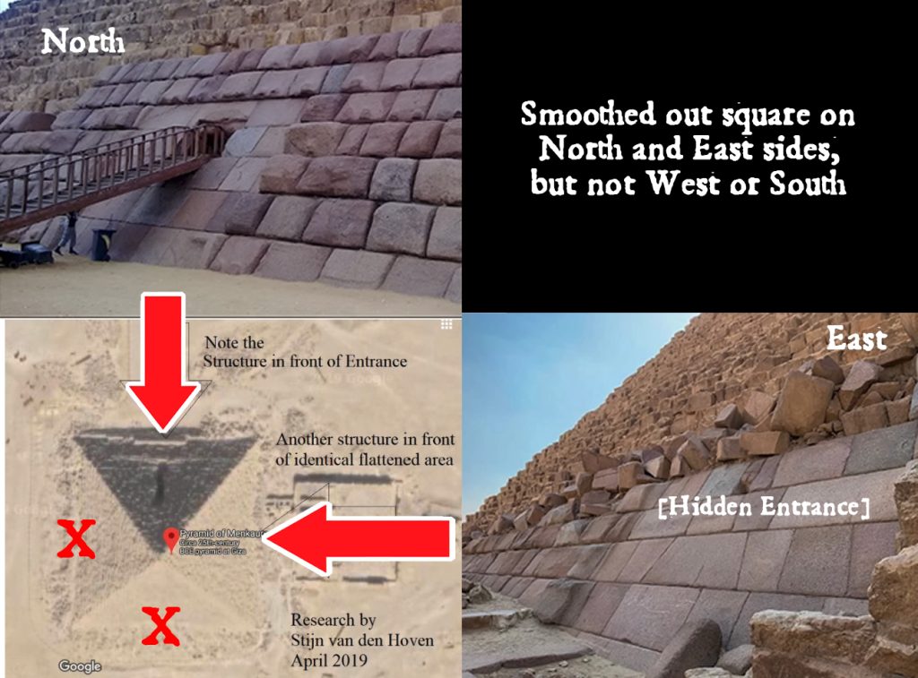As I mention in my interview with Stijn, I have also been studying a great deal of evidence, along with William Brown, regarding eastern entrances into the Pyramids of Khufu of and Khafre as well. It would seem that all the main entrances to the pyramids are in the north, but all the secret entrances are from the east, and concealed underground. In our SECRET UNDERWORLD OF GIZA series [LINK], we share all this evidence, and in Part Seven (coming soon), we will share even more!