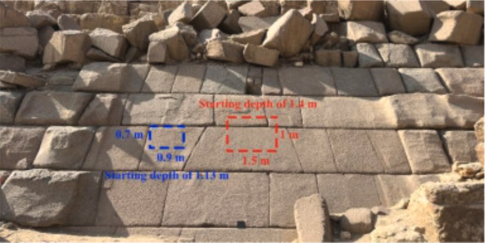 They also found a second anomaly just to the left of it, though smaller. Both were determined to be roughly a meter from the surface, meaning they are blocked by only one layer of casing stones. By carefully removing just one or two stones, we could enter this passageway and find out where it leads. In fact, Stijn has organized a fundraiser to finance further investigations [LINK].