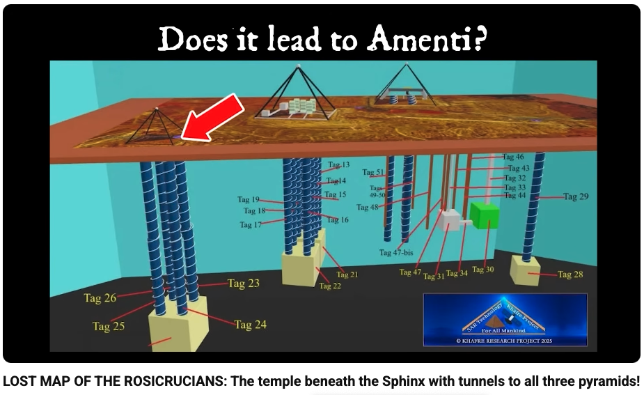 In a previous video [LINK], I revealed a map from 1932 that shows tunnel connections from the Sphinx to all three pyramids, and in all three cases, the tunnel arrives at the center of the pyramid’s eastern face. This indicates that the new Menkaure entrance may very well connect to the tunnel system that would give access to all three pyramids, and any potential as-yet-unknown chambers within them!